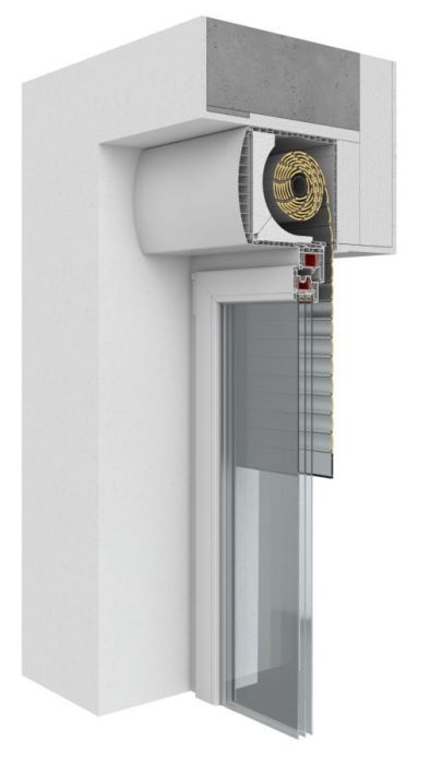 System kaset nasadzanych na ramę okna, wykonany z rewizją od czoła kasety, bez możliwości zabudowania rolety od wewnątrz pomieszczenia. Rozwiązanie zalecane dla okien przesuwnych o dużej grubości ramy oraz gdy wymagany jest łatwy dostęp serwisowy do rolety.
